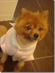 Mummy bought Mango for a Chinese New Year cut and I must say she is ugly!!!!! Poor mango looking really bimbotic with fur shaved from her nose… Poor pup… :S